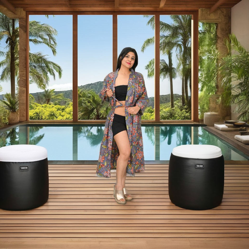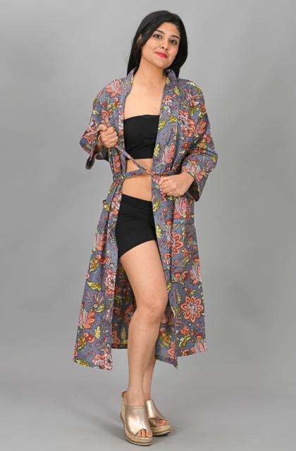 Peignoir d'été 100 % coton pour femme, doux, séchage rapide, col en V, fermeture à cordon, longueur intégrale, manches longues, style kimono confortable
