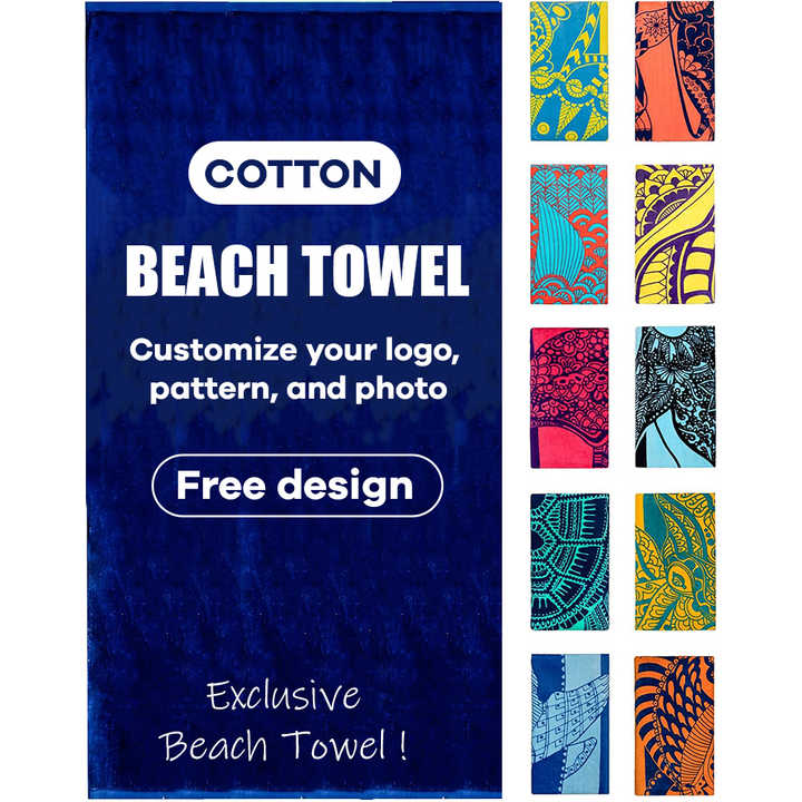 Serviettes de plage 100% coton, design personnalisé, impression réactive, grande taille, logo jacquard, serviette de plage pour la natation
