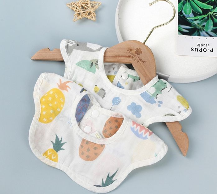 100% Cotton Bib for Newborn Kids Soft Double Buckle Button Closure Washable Bib for Eating Occasions
