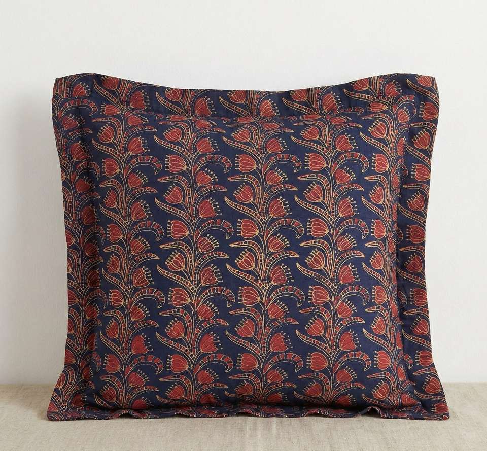 Coussin en coton imprimé à la main au bloc