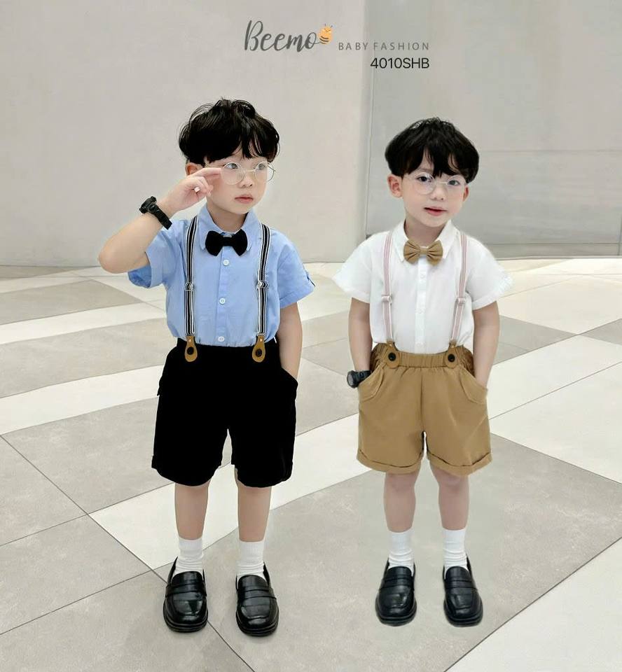 New Arrival 100% Cotton Bow Collar Shirt and Belt Set Short Sleeve Formal Clothing for Baby Boys Ages 1-7 for Hot Summer