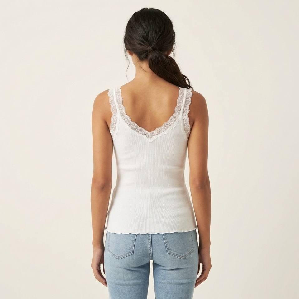 Débardeur côtelé en coton 100% respirant avec fines bretelles en dentelle, taille unique (tailles 3644)