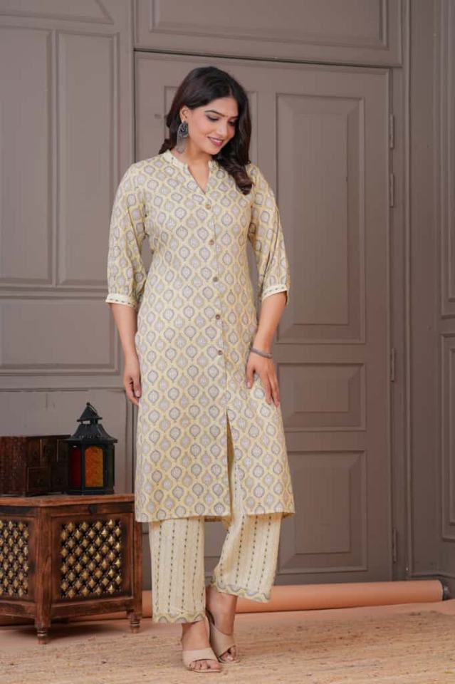 Ensemble coordonné 100% coton pour femmes, vêtements de détente ethniques indiens durables, imprimé floral, ensemble kurta et pantalon, ensemble 2 pièces
