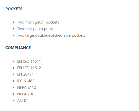 Réfléchissant, Anti-froid, Anti-chimique, Antistatique, Preuve de l'eau