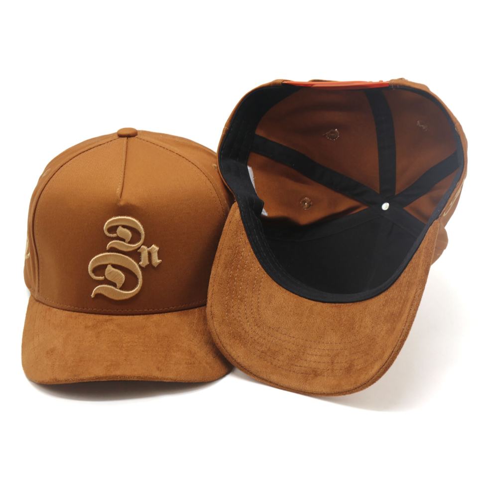 100% coton logo de broderie 3D personnalisé une casquette de baseball 5 panneaux avec bord en daim