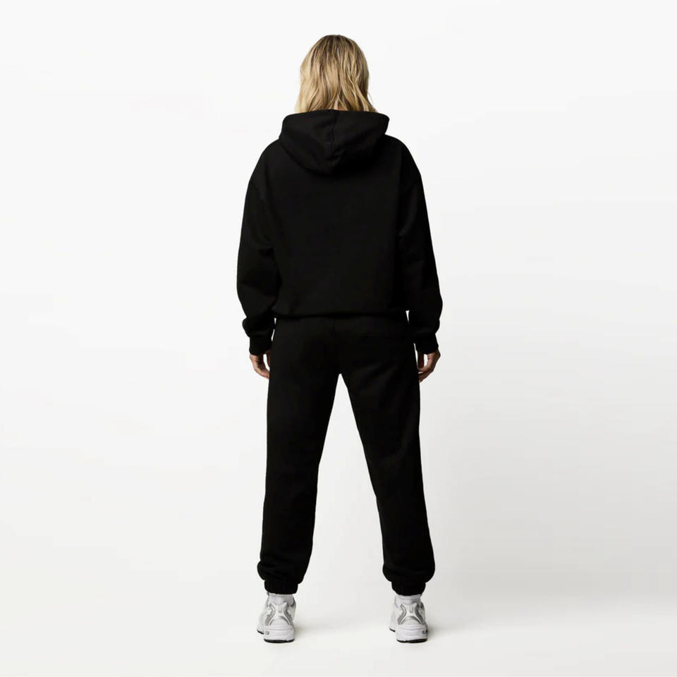 100% coton goutte épaule coupe décontractée deux pièces capuche établi décontracté noir femmes survêtement