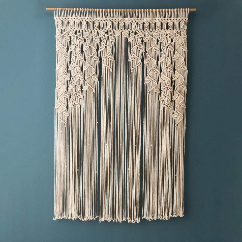 Rideau de porte en macramé de grande taille en tissu 100% coton, style moderne, prix de gros du Vietnam, anniversaire