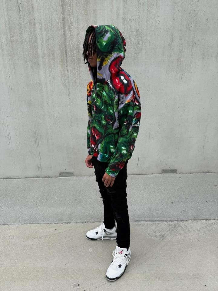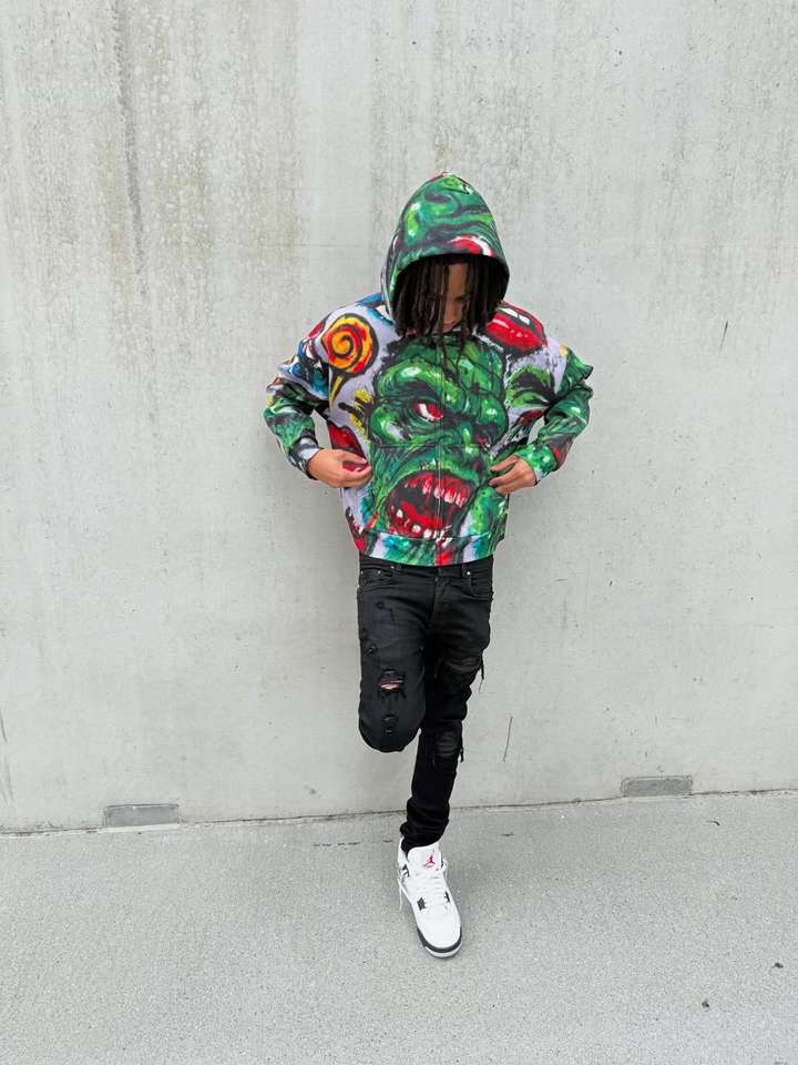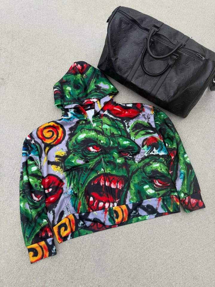 100% Cotton Full Printed Hooded Sweater Embroidered Three-Dimensional Pattern French Terry Washed Technics Oversized for Autumn