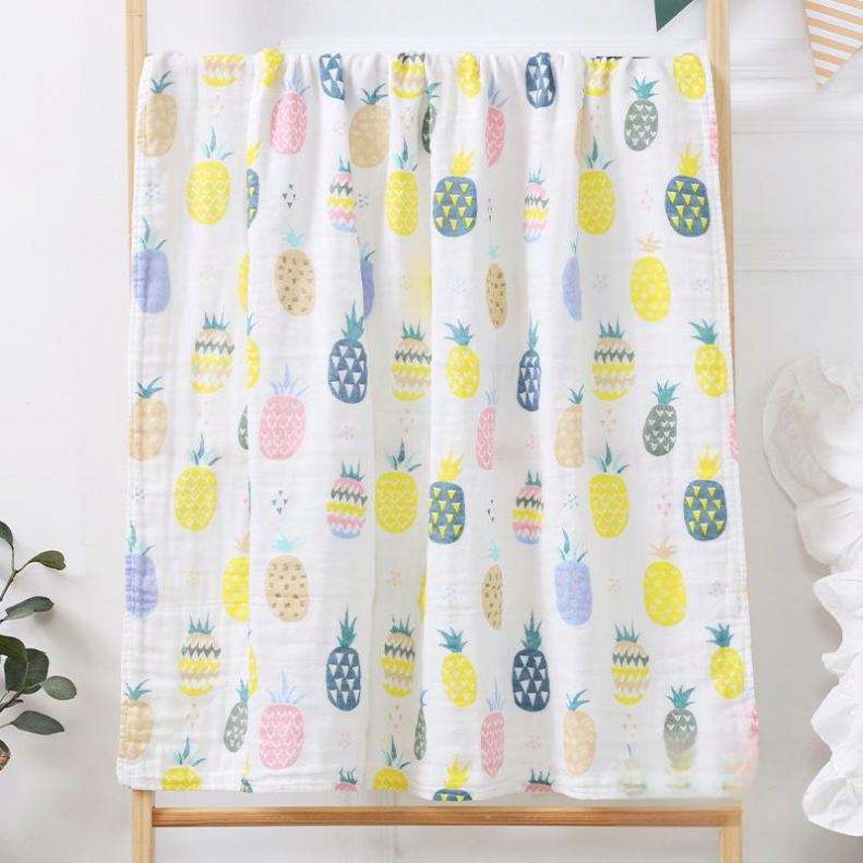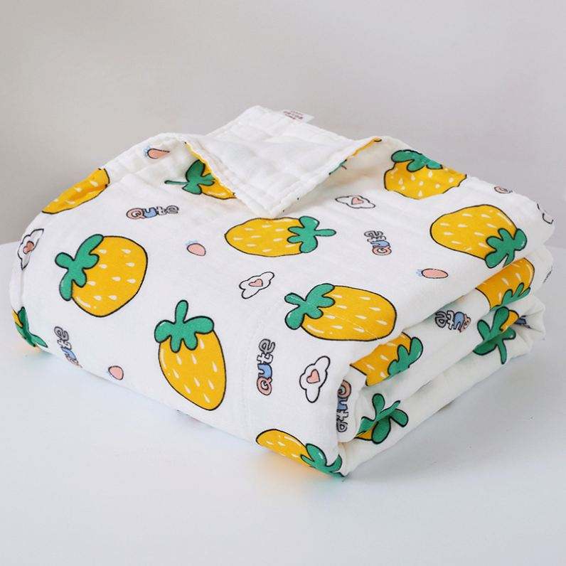 100% Cotton Gauze 6 Layers Baby Square Towel 110*110cm Cute Cartoon Fruit Food Theme Muslin Blanket