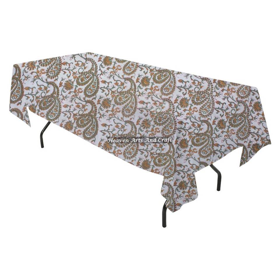 Nappe de table rectangulaire en coton 100% imprimée à la main, nappe de table en lin et coton de qualité supérieure pour salle à manger