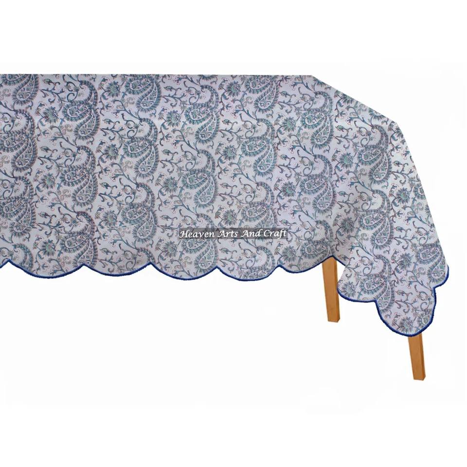Nappe rectangulaire en coton 100% imprimée à la main, bordure festonnée, qualité supérieure, pour salle à manger
