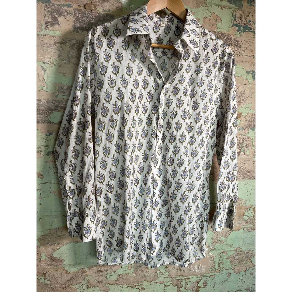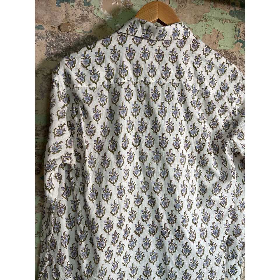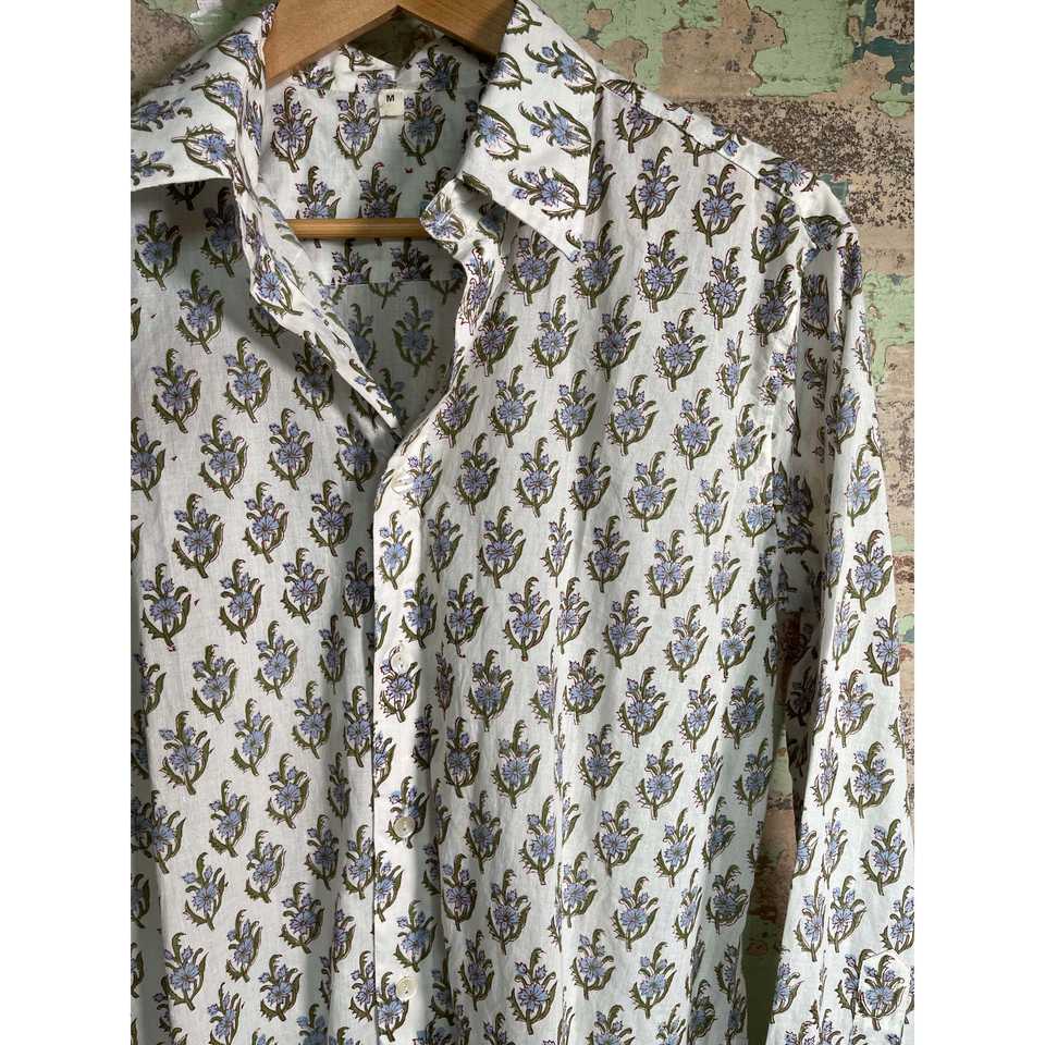 Chemise unisexe 100 % coton imprimée à la main, coupe ajustée, style décontracté et smoking, motif fleurs sauvages