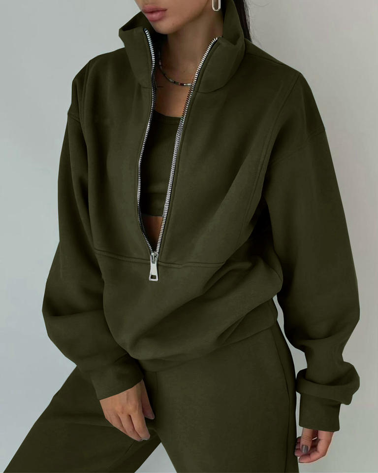 100% coton lourd femmes survêtement fermeture éclair à capuche et survêtement ensemble élégant automne hiver chaud deux pièces ensemble