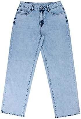 100% coton taille haute grande taille cloche bas petit ami jean pour femmes été plat avant avec fermeture à la taille élastique
