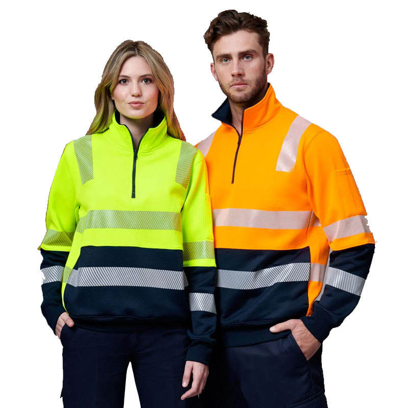 100% coton dames haute visibilité fermeture éclair cou vêtements de travail sweat réfléchissant sécurité pull sécurité haute visibilité à manches longues vestes