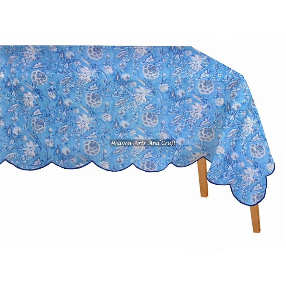 Nappe rectangulaire élégante en coton et lin 100% avec imprimé artisanal, bord festonné, style classique, lavable, vintage, pour la salle à manger et la cuisine