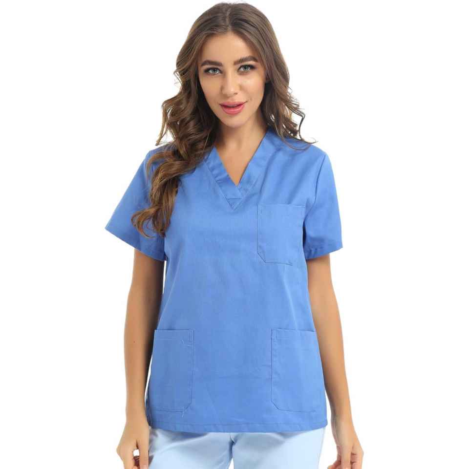 100% coton col en V Top qualité soins infirmiers gommages avec poche poitrine confort toute la journée uniforme médical pour les médecins
