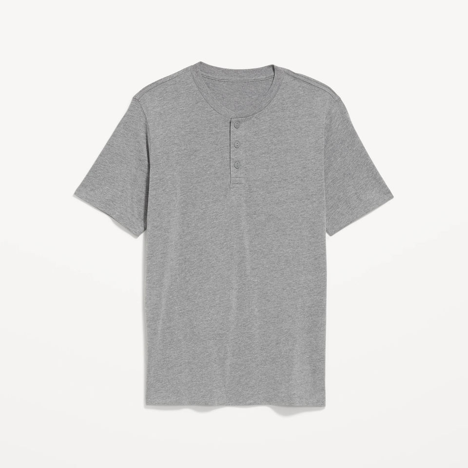 100% Cotton Men's Henley Neck T-Shirt Breathable 180 GSM Plaid Short Sleeve Long for Summer