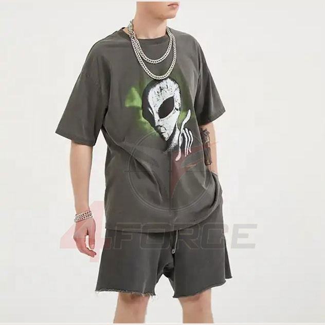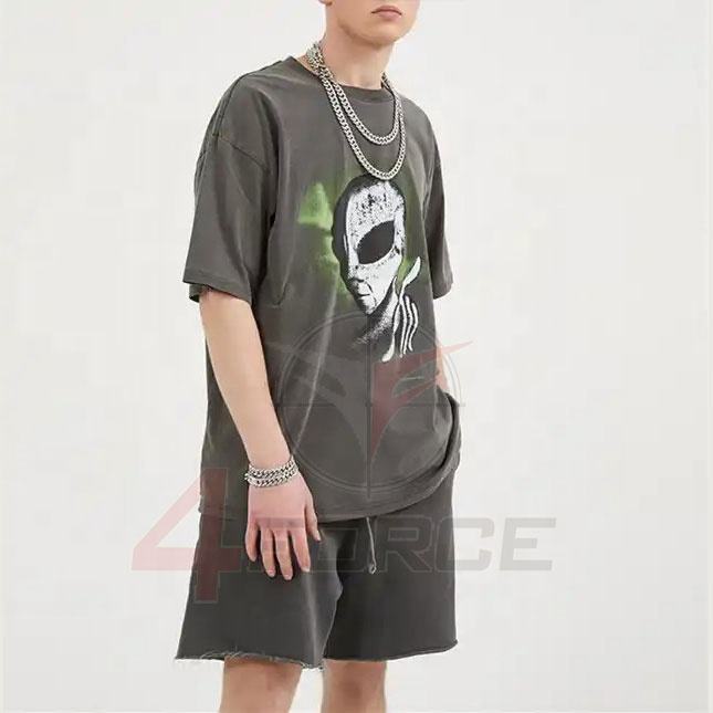 100% coton hommes surdimensionné lavé à l'acide soleil délavé T-Shirt Logo personnalisé 3D brodé DTG impression goutte épaule conception en détresse
