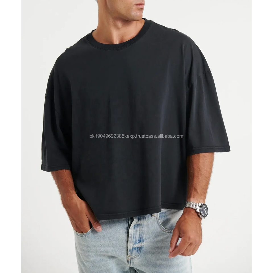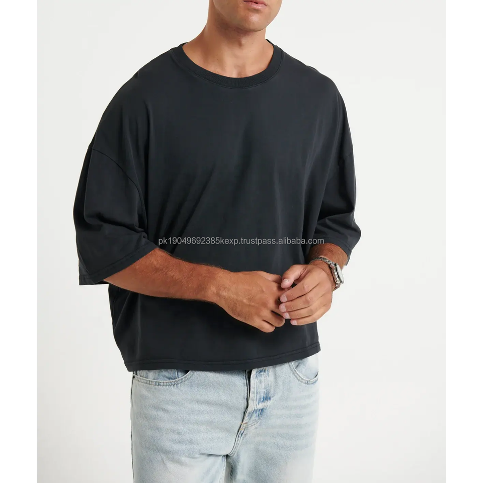 100% Cotton Men's Oversized Crop Boxy Fit Tshirt Print Luxury Quality Streetwear Custom Logo Drop Shoulder Plain Crop Design