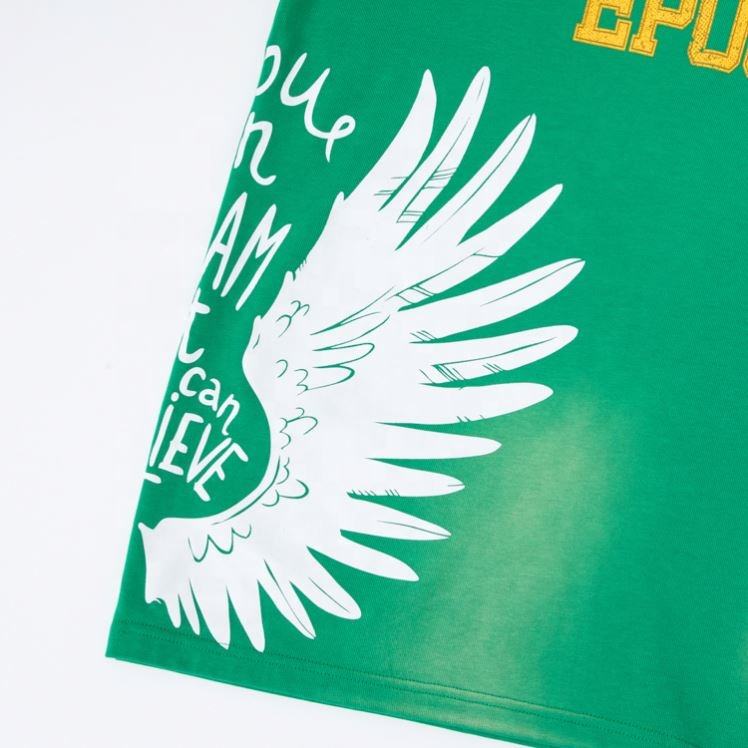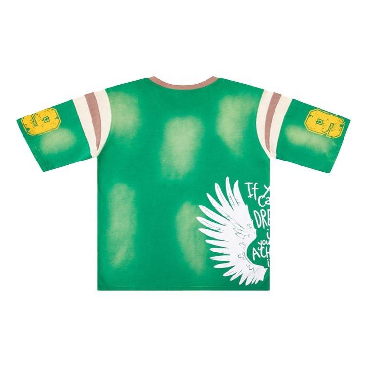 T-shirt Rétro Homme 100% Coton Streetwear Épais Patchwork Personnalisé Délavé à l'Acide Coupe Oversize Sportive Impression Numérique Lettres