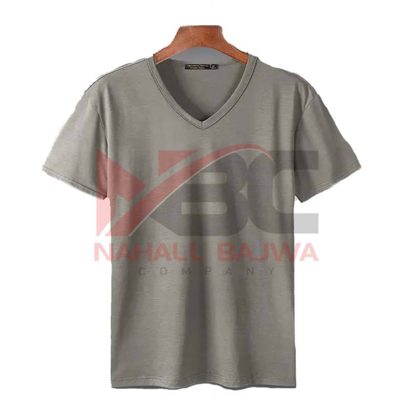 T-shirt col V pour homme 100% coton Logo personnalisé T-shirts vierges noirs pour homme