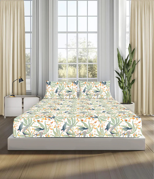 Parure de draps 3 pièces en percale 100 % coton 300 fils, motif géométrique, finition fraîche et légère, écologique, pour l'été