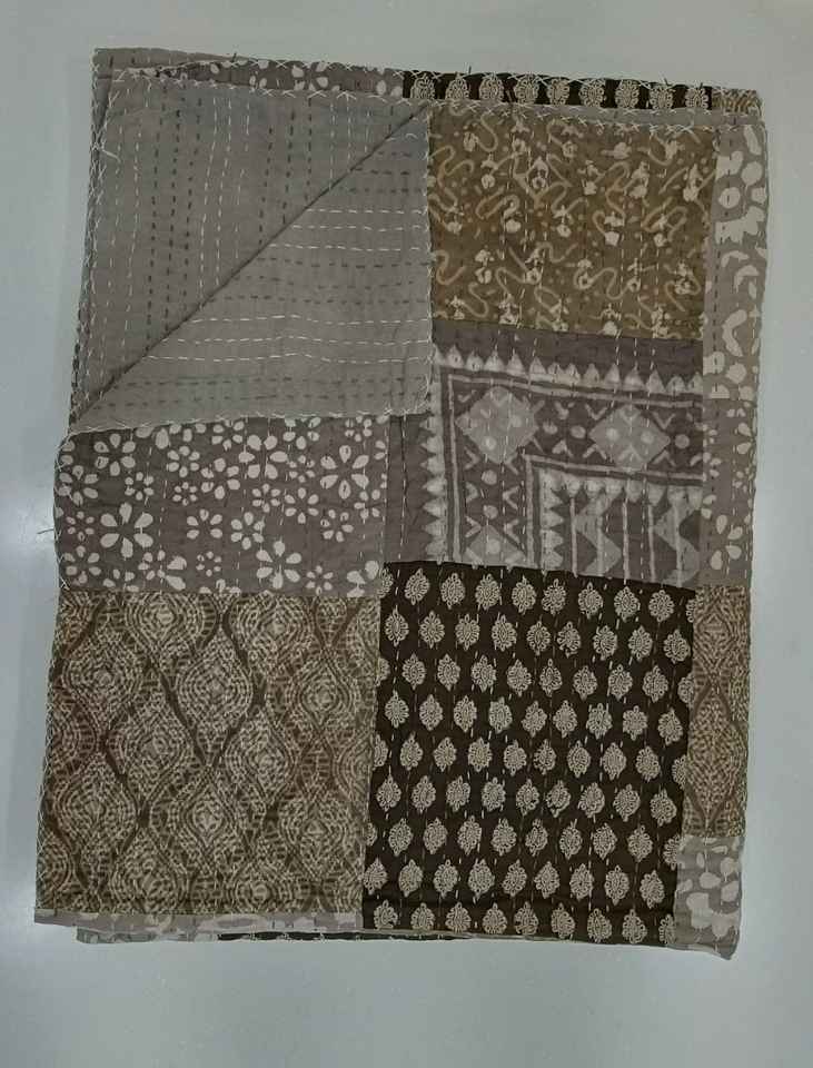 Couvre-lit matelassé 100 % coton, imprimé à la main, style Kantha, patchwork Gudari Mud, pour la maison et l'hôtellerie