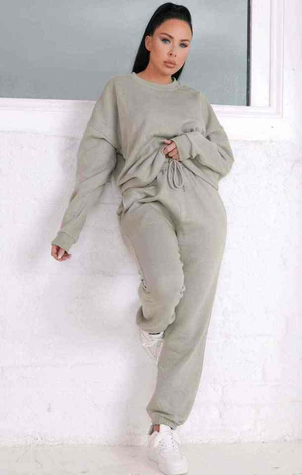 100% Cotton Sage 2 Piece Women's Crew Neck Sweat Shirt & Cuffed Jogger Set Breathable Hoodie And Sweatpants Women Tracksuit Set
