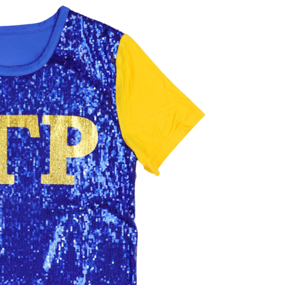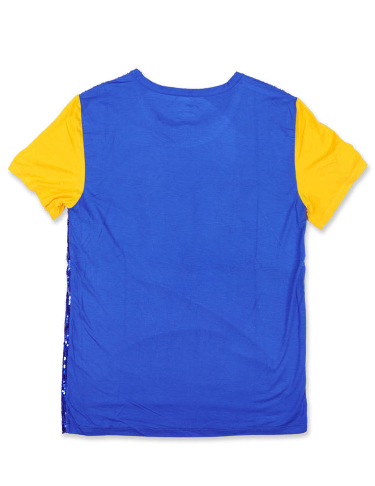 T-shirt décontracté pour femme en coton 100% avec lettres grecques brodées de sequins bleu roi et or de la sororité Sigma Gamma Rho
