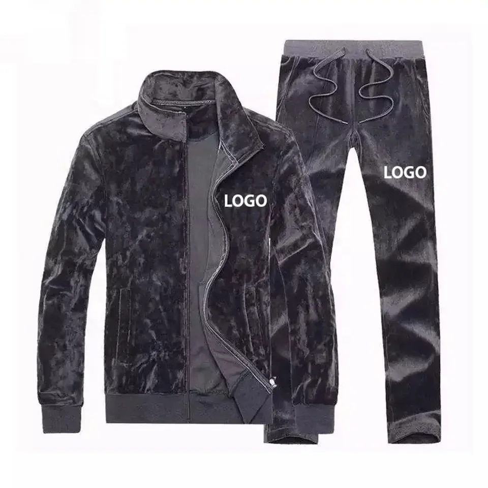 Ensemble de sport d'hiver personnalisé en polyester et coton pour hommes et femmes, survêtement de course et d'entraînement multicolore en velours avec logo, pantalon de survêtement et sweat à capuche