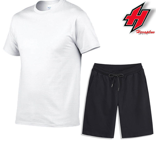 Ensemble 2 pièces pour homme été 2024, léger et respirant, t-shirt et short en polyester/coton blanc, tenue décontractée