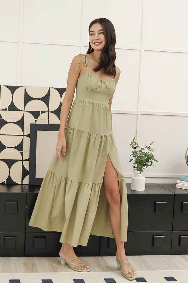 100% coton été col en V dos nu avec plusieurs niveaux lâche décontracté sans manches dames Maxi avec robe de limon latérale pour les femmes