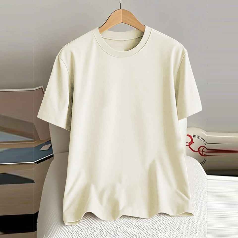 100% Cotton Casual Crew Neck Oversized T-Shirt Short Sleeve Drop Shoulder Tees with Slight Stretch Woven Fabric