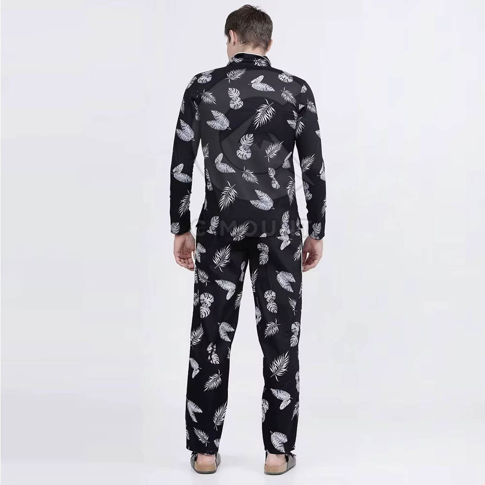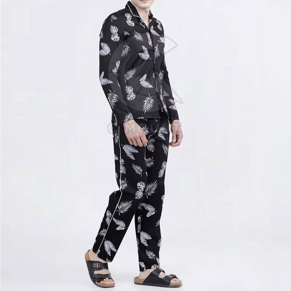 100% coton deux pièces pyjama ensemble respirant et doux vêtements de nuit pour hommes soie Satin à manches longues hommes costume de nuit
