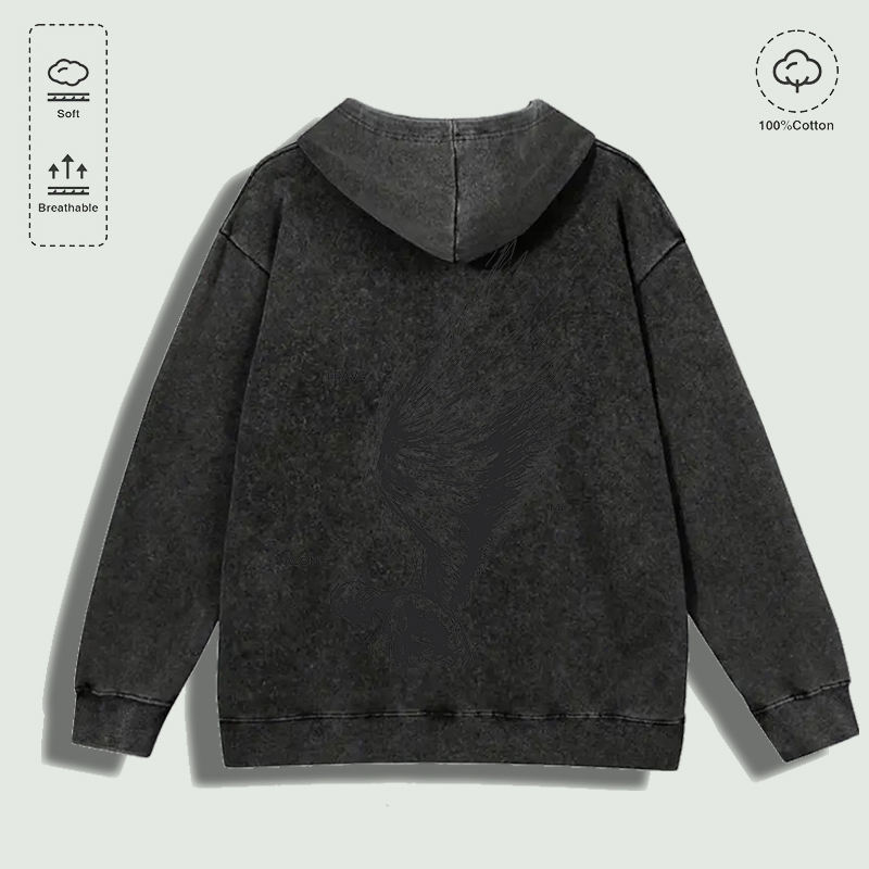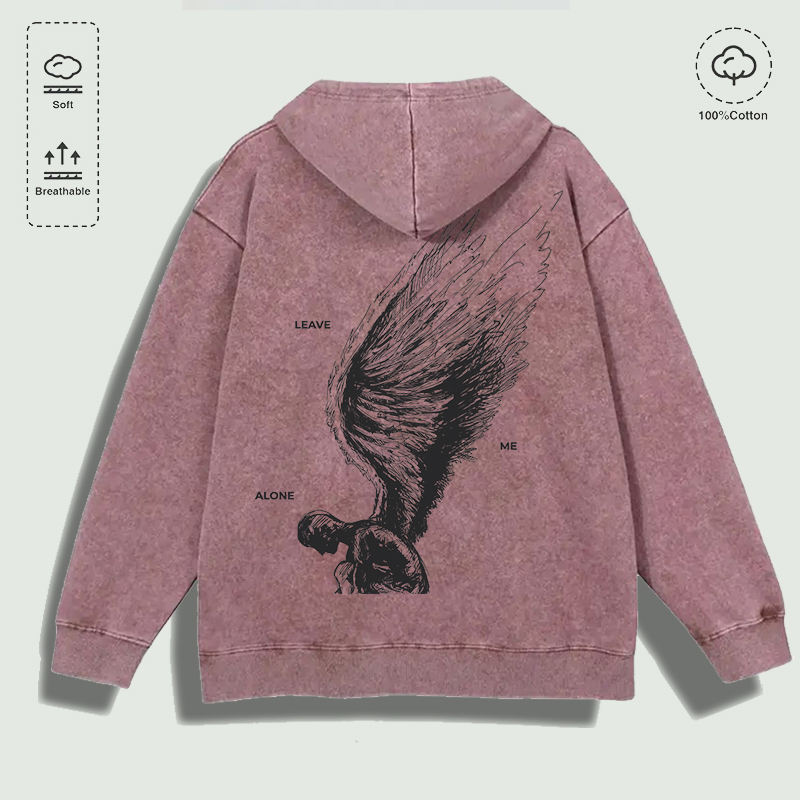 Sweat à capuche 100% coton lavé avec inscription graphique « Leave Me Alone Angel Wing Edgy », plusieurs couleurs