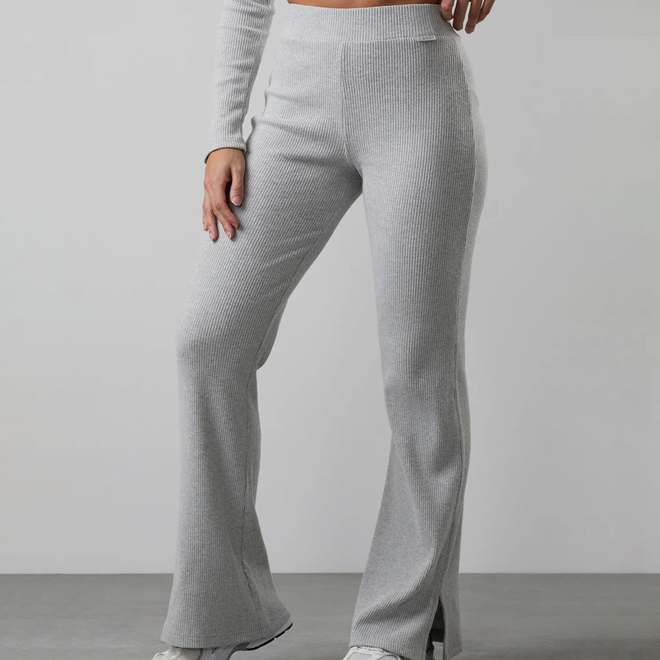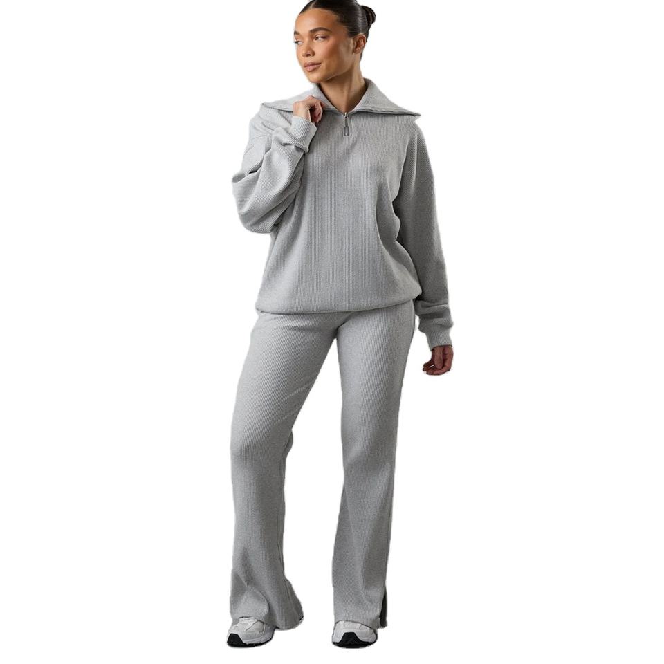 100% Cotton Women's High Neck Funnel Grey Marl 2 Piece Set Full Length Sleeves Tracksuit & Breathable Sweatpants Relaxed Fit Set