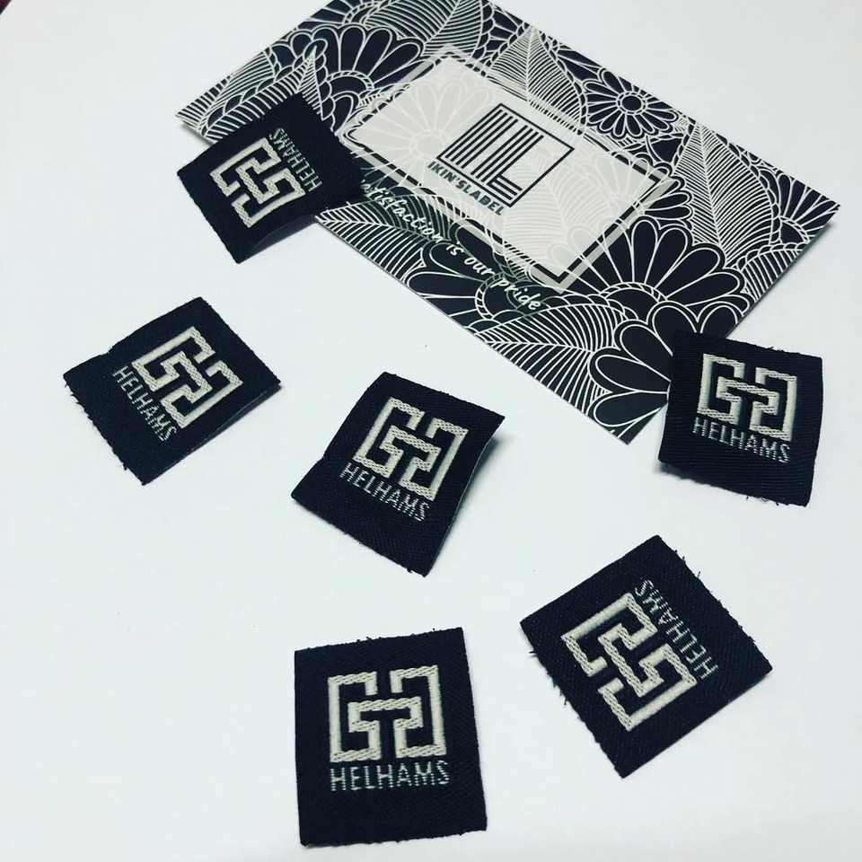 100 Custom Brand Name Clothing Woven Label High Quality 2x5cm Garment Fabric Label Logo Hot Stamping Technique End Fold/Center