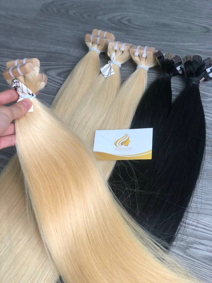 Extensions de cheveux à bandes adhésives 100% alignées sur les cuticules, couleur claire, lisses, vierges du Vietnam, provenant d'un seul donneur, grade blanchi