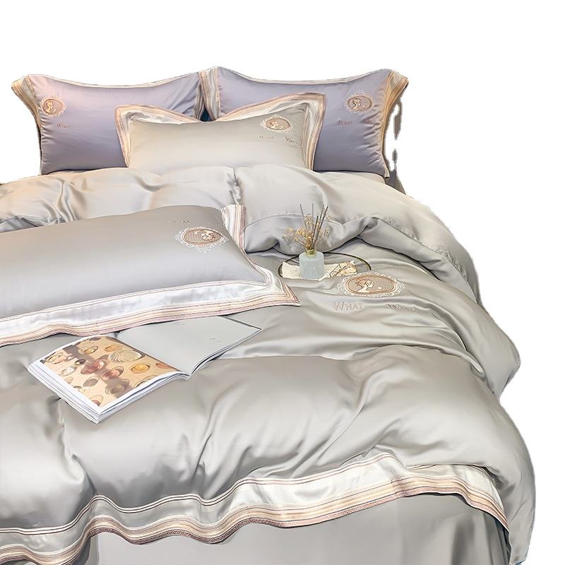 Linge de lit en tissu Double antenne, 4 pièces, soie glacée, style européen, housse de couette pour sommeil nu, 100