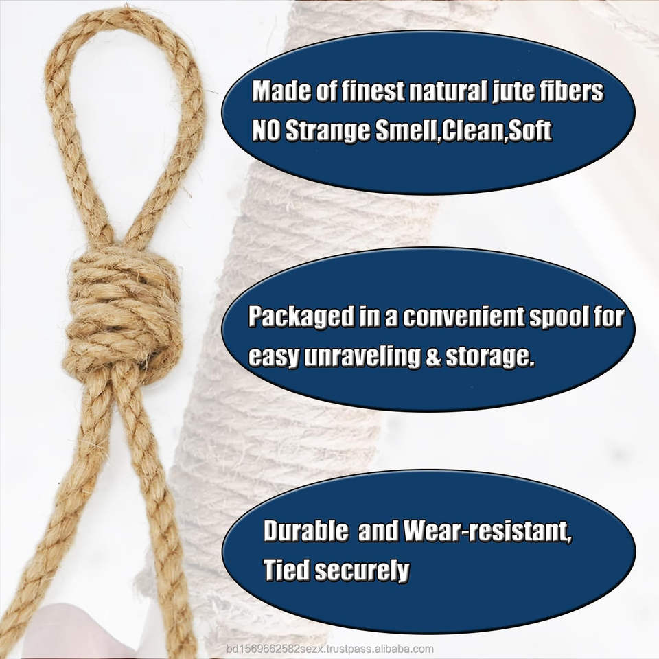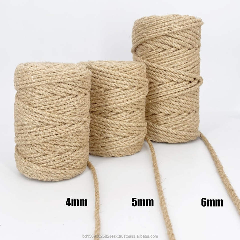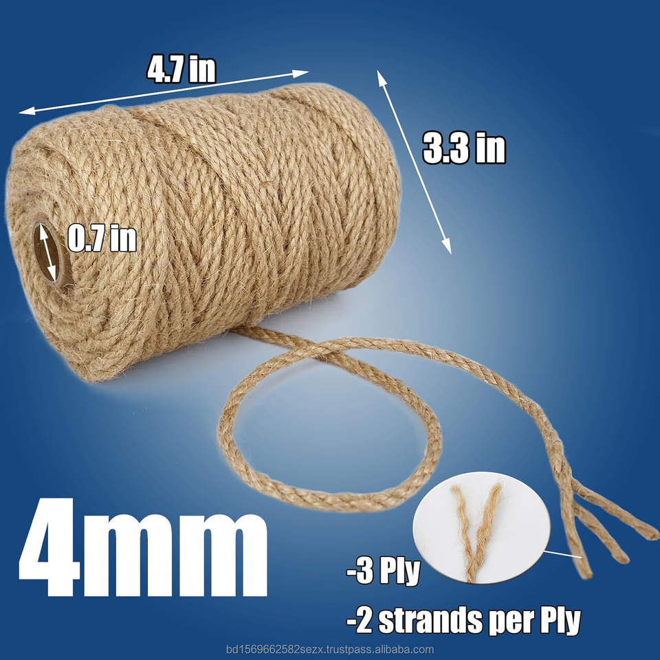 Product name:100% Jute Natural High Quality 4mm 3 stand Twist Jute Rope 164 Feet