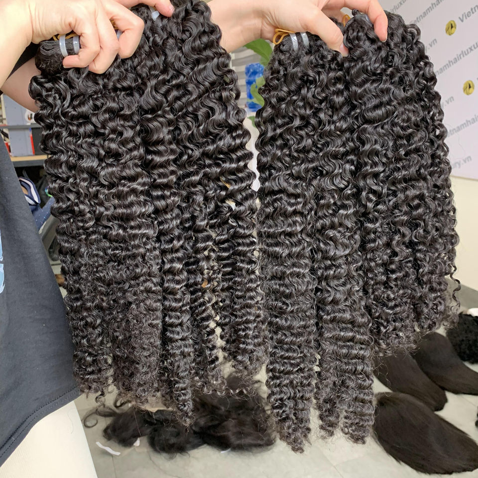 100% eurasien bouclés Remy vierge vietnamien Extension de cheveux humains Style de vague d'eau cheveux bruts tissage trame unique