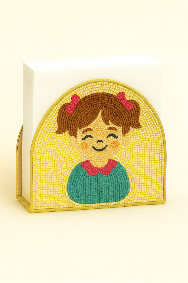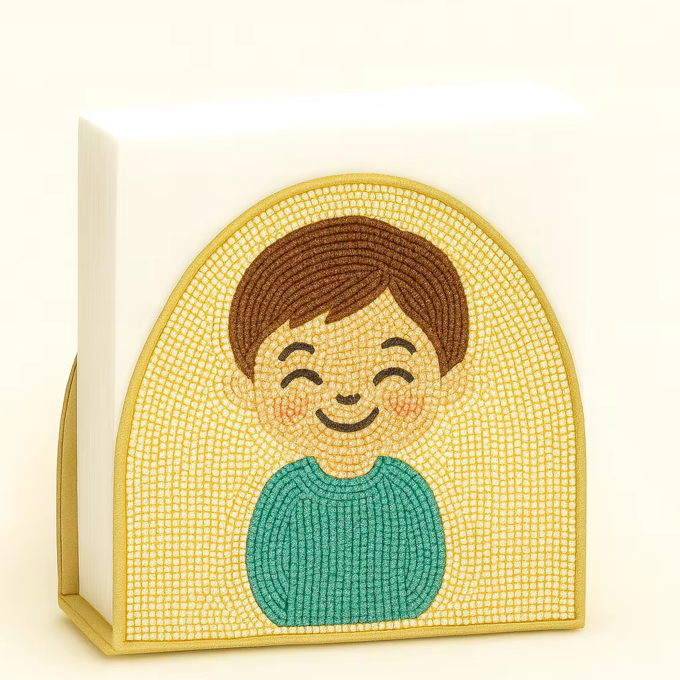 100% qualité d'exportation nouveau porte-serviettes perlé coloré avec porte-mouchoir brodé de conception de garçon souriant pour décor de Table à manger