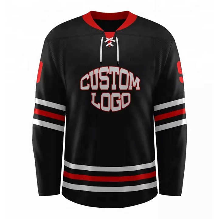 Maillot de fan de hockey en polyester recyclé avec impression de sublimation de broderie de nom d'équipe personnalisée pour vêtements de sport