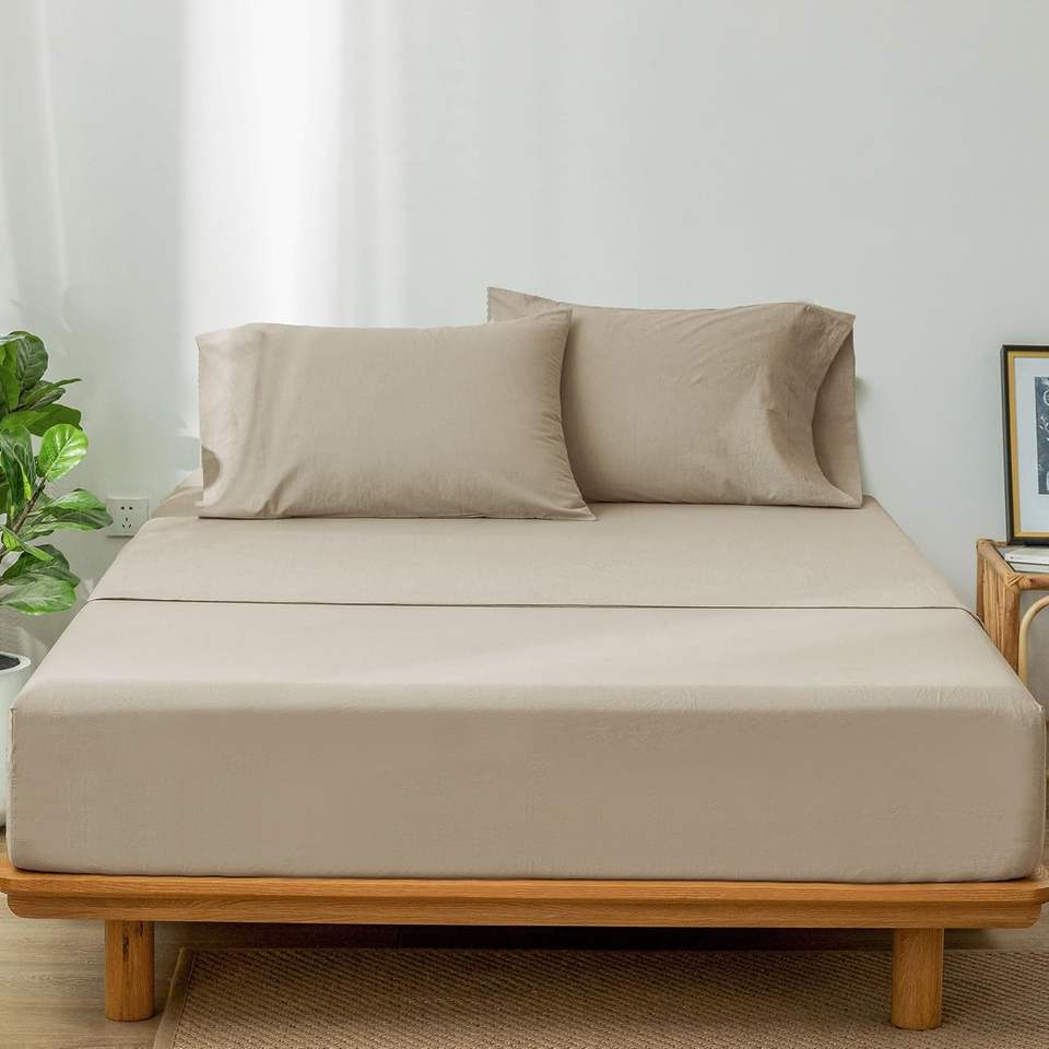 Ensemble de draps en coton lavé pour vêtements 100% Queen Size, ensemble de draps de literie en coton ultra doux 4 pièces