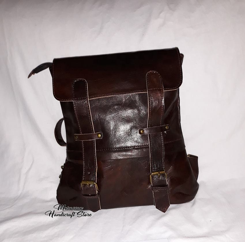100% véritable cuir de chèvre fou cadre externe motif géométrique utilisation de jour sac à dos capacité 30-40L en gros