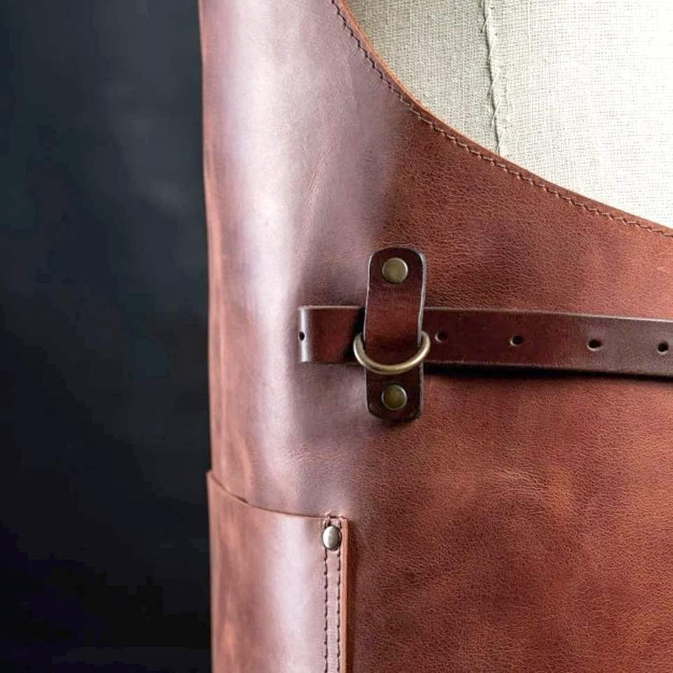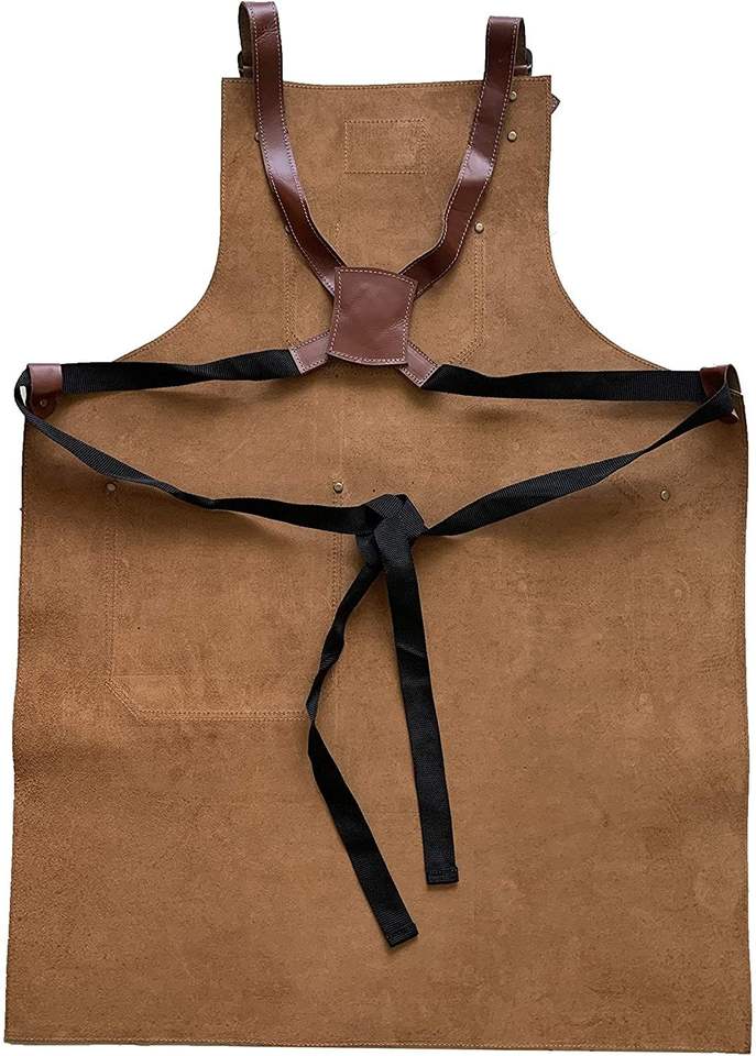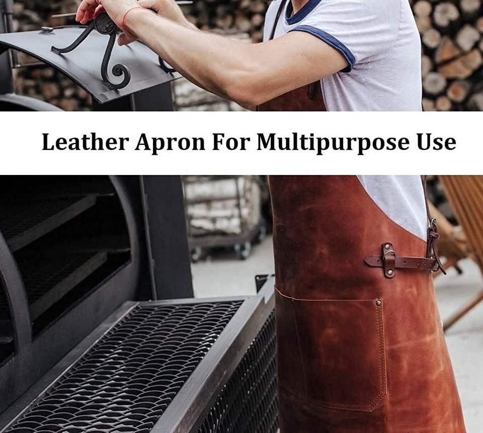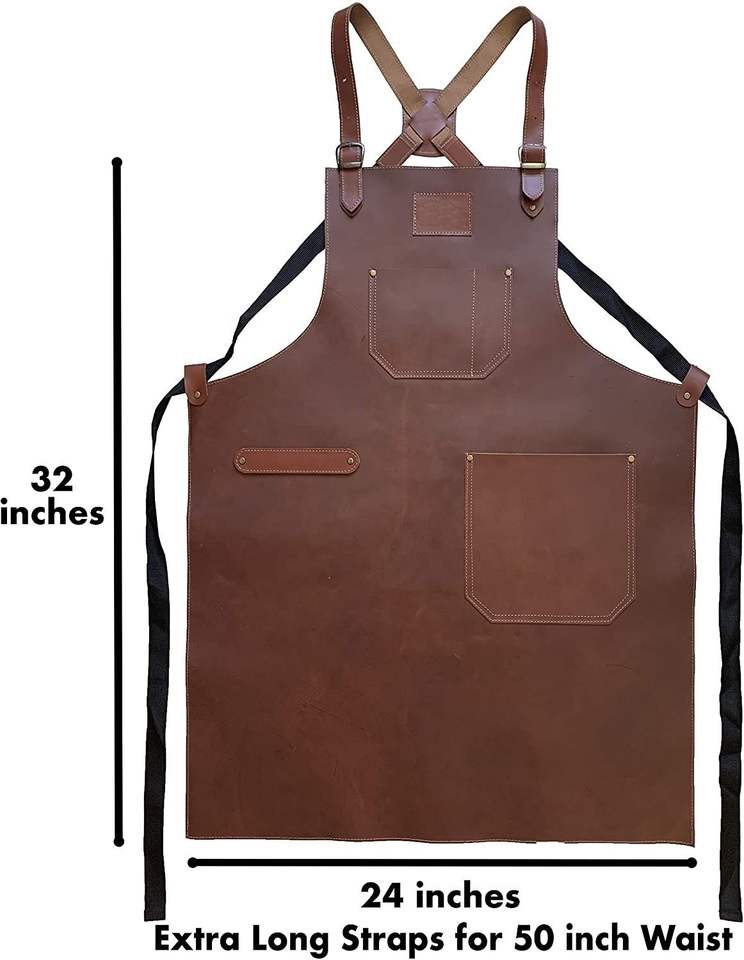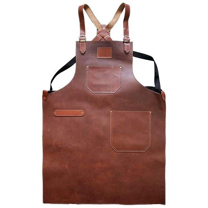 Tablier de travail sans manches en cuir véritable 100% durable, classique, pour cuisine, barbecue, chef ou barbier, marron et noir, pour professionnels