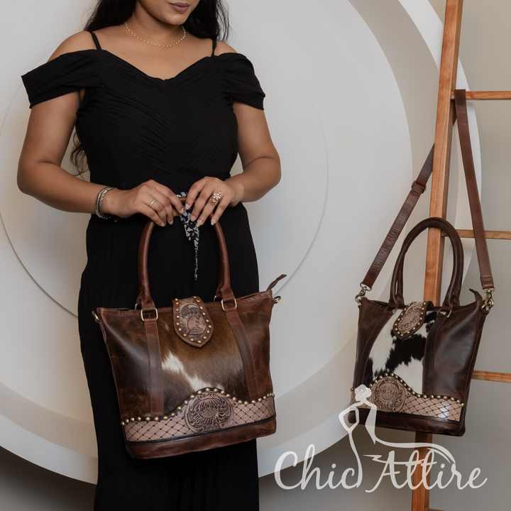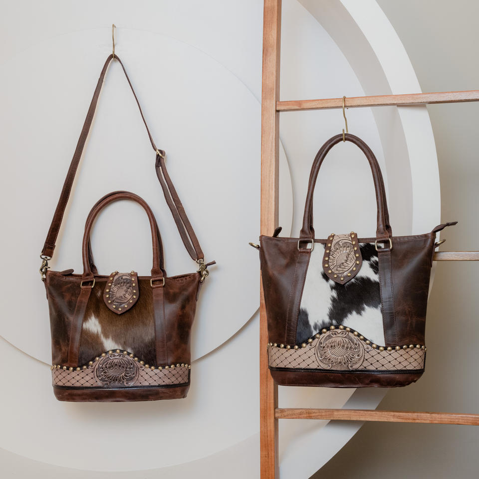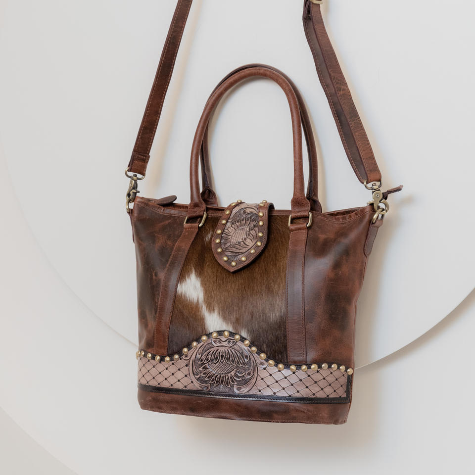 Product name:Hair On Tooled Leather Tote Purse