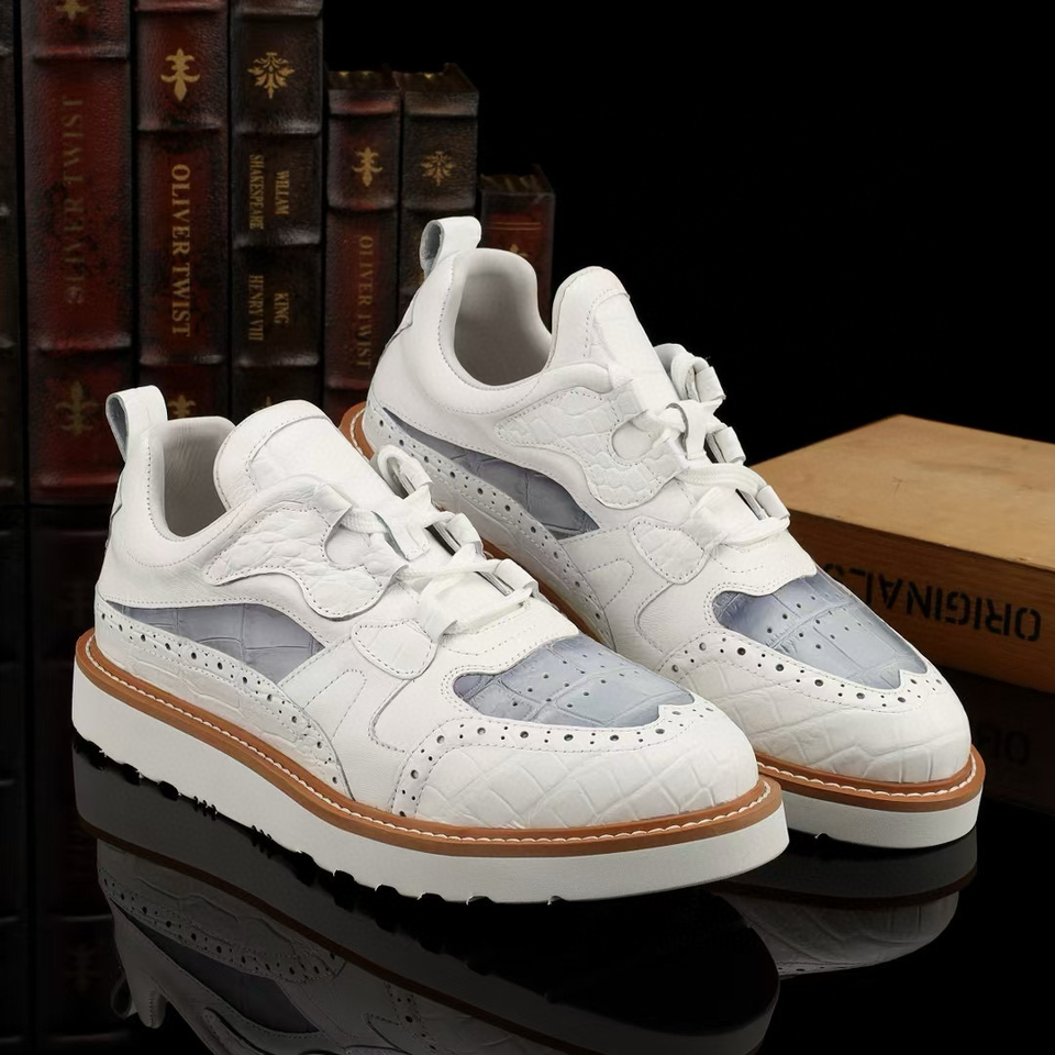 100% Authentiques pour la peau, Baskets à lacets à bout rond pour Hommes et Femmes - Style Sportif, Semelle intermédiaire en caoutchouc, Mode de vacances