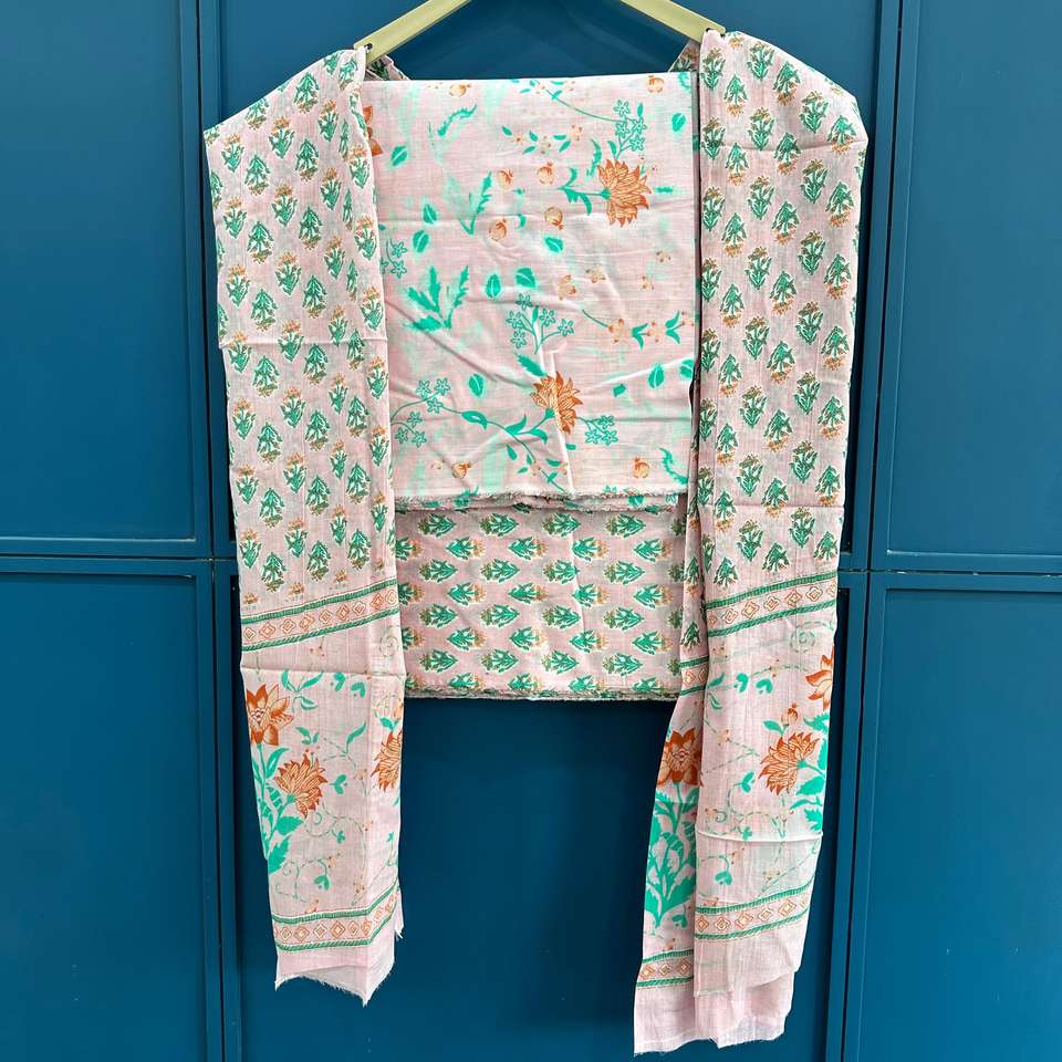 Tissu en Chiffon Imprimé à la Main 100% - Design Traditionnel Indien - Fabriqué pour des Vêtements - Travail Imprimé en Chiffon - Matériel de Robe Non Cousu